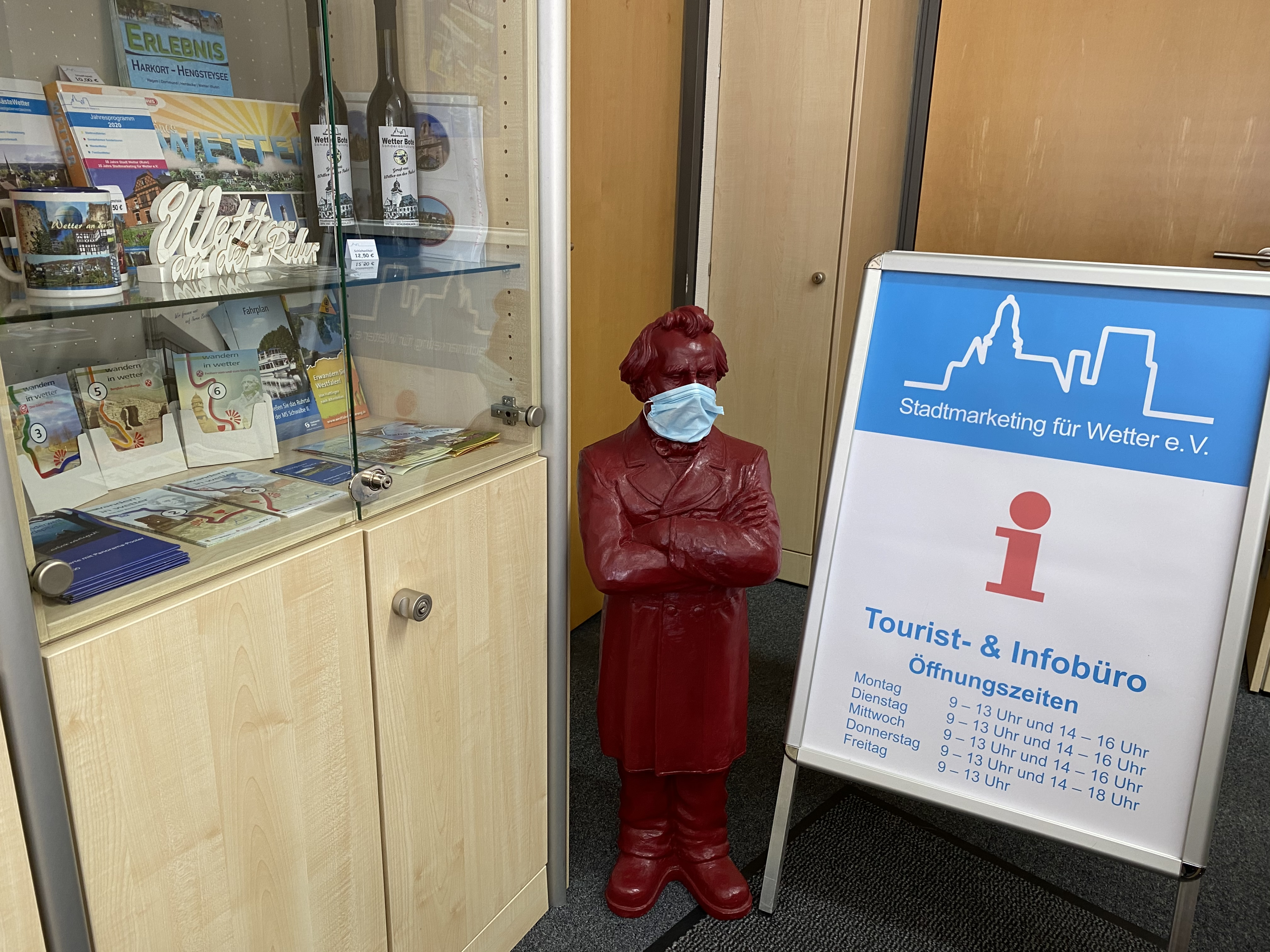 Aber auch der Verkauf von Merchandising-Produkten wie die Wetteraner Panorama-Tasse, Postkarten, der Schlehenlikör "Wetterbote", Bildband "Wetter (Ruhr)" in deutsch/englisch u.v.a.m. können Sie bei uns im Info-Büro erstehen.